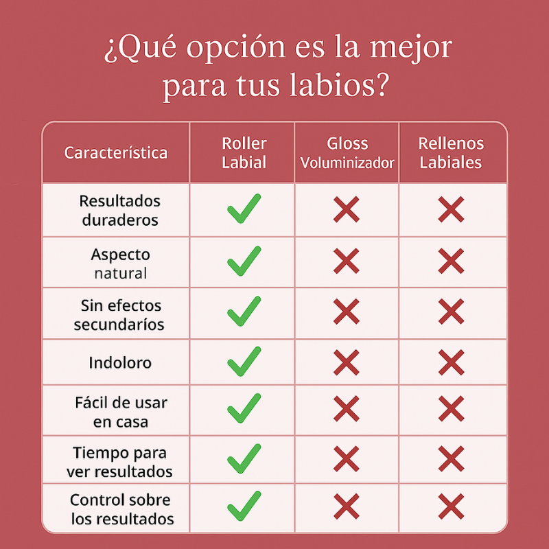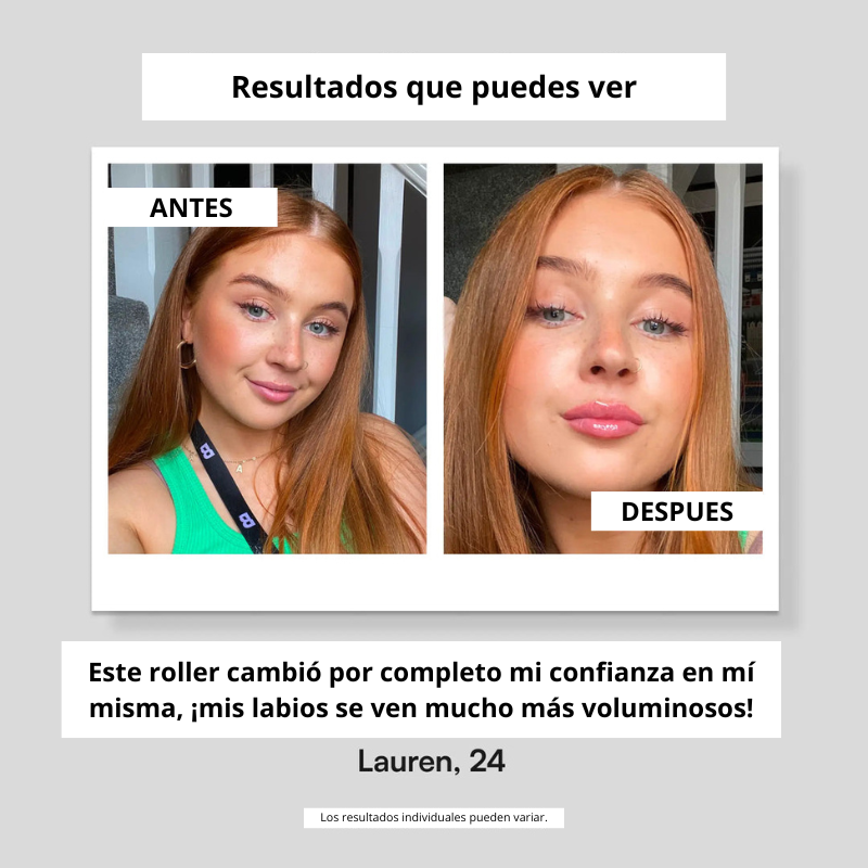 A diferencia de los glosses que provocan hinchazón temporal usando ingredientes irritantes (¡y a veces causan ardor!), el Roller Labial estimula la producción natural de colágeno para conseguir unos labios con más volumen y suavidad de forma progresiva y duradera.